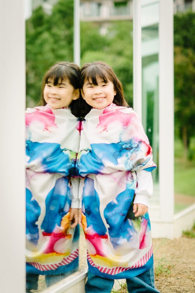 太陽のオレンジ、大地の緑、空の青。生まれて初めて見るような、この世界の光。すべてが重なり合って、自らを優しく包んでくれる。一つひとつの生命が身体の細胞の中に溶け込んで、また前に進むチカラとなる。この作品から、柔らかなホールネスと、いのちの再生を感じていただけたら幸いです。